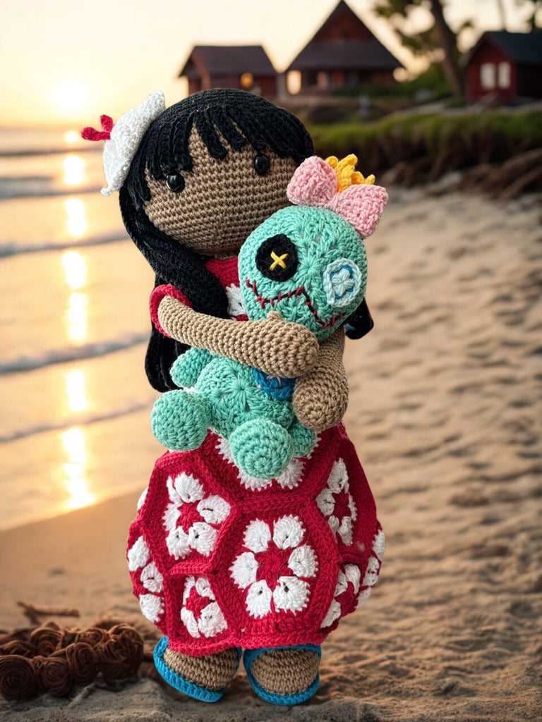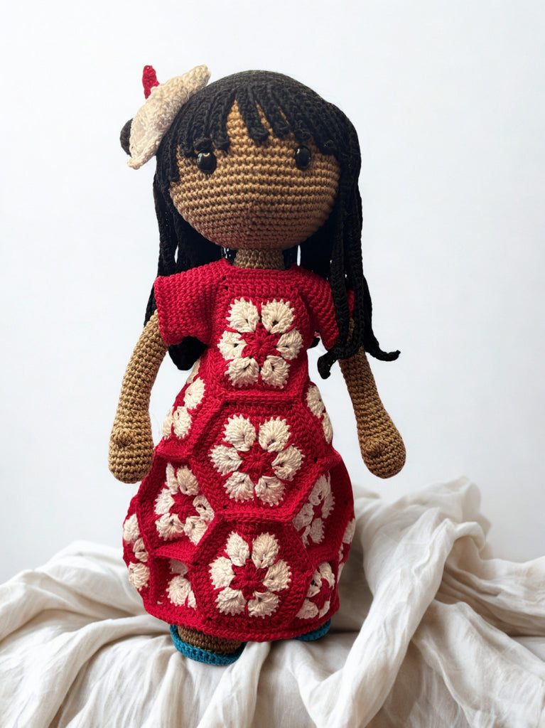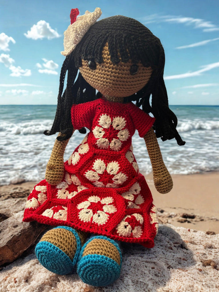 Desde su falda tropical hasta sus detalles florales, cada hexágono tejido cuenta una historia de alegría, creatividad y tradición. Perfecta para decorar, regalar o simplemente disfrutar como una obra de arte tejida a mano.